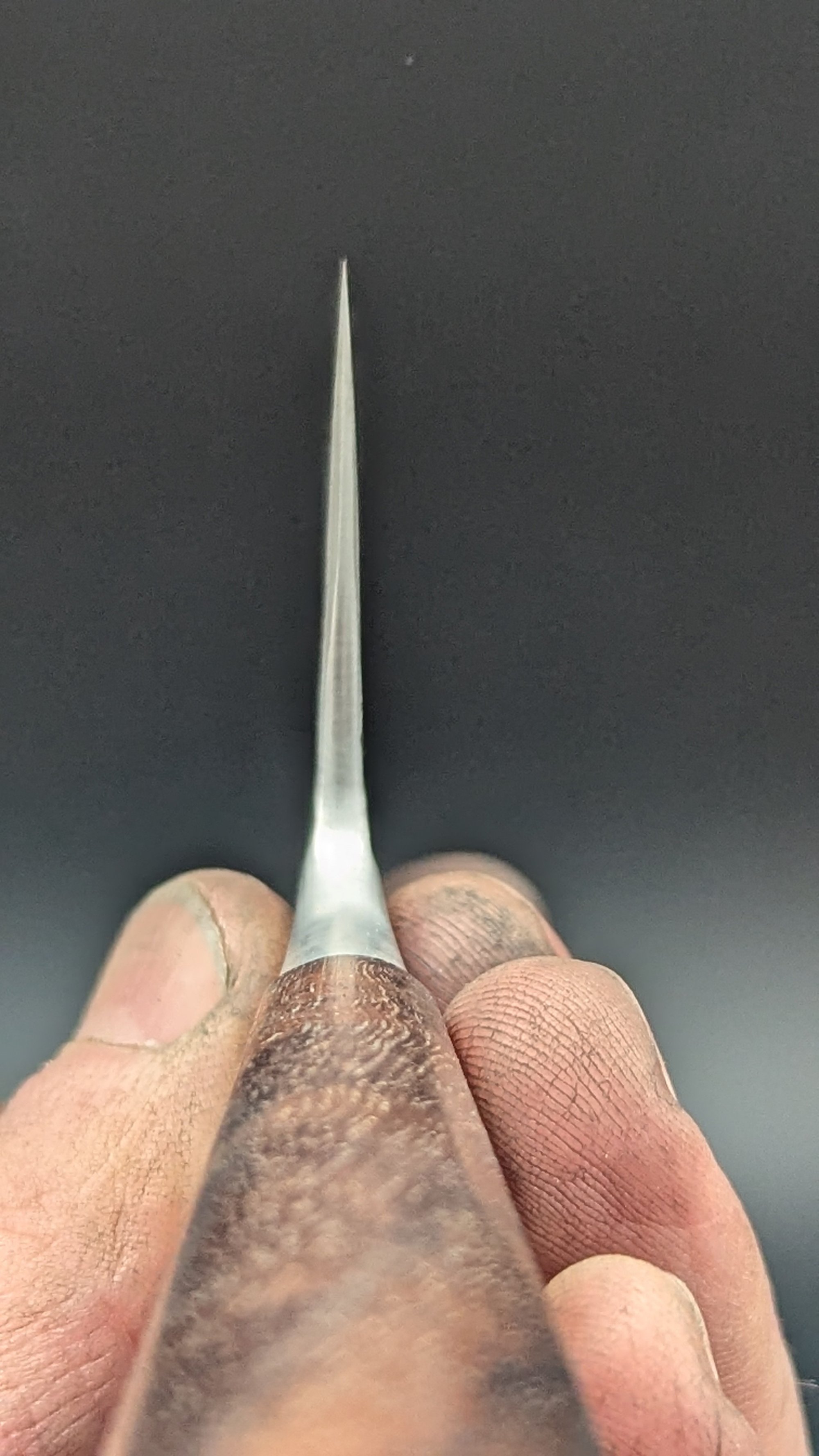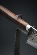 I added the handle with a slightly heitloom fit. I carved a little step into the front of the handle so the bolster sits in the handle. This allows the wood to expand and shrink over the time without creating a gap between handle and bolster.